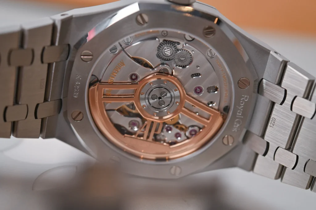 The original Audemars Piguet Royal Oak Automatic 41mm is powered by in-house movements such as the Caliber 4302. Replica versions typically use Asian automatic movements or modified Swiss ETA clones. These movements can keep reasonable time, often within ±15 to 25 seconds per day, but they lack the precision, durability, and finishing of the authentic caliber.