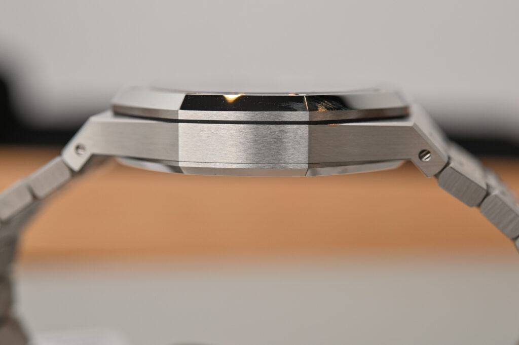 The integrated bracelet is one of the most challenging aspects for replica manufacturers to replicate accurately. The links usually feel lighter, and the articulation is not as smooth. On some replicas, there may also be small gaps or less precise alignment between links, which becomes noticeable during daily wear.